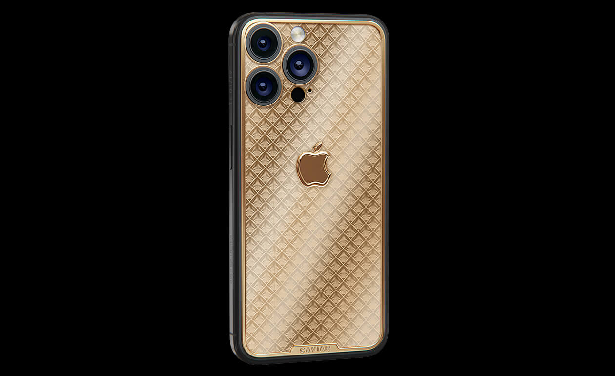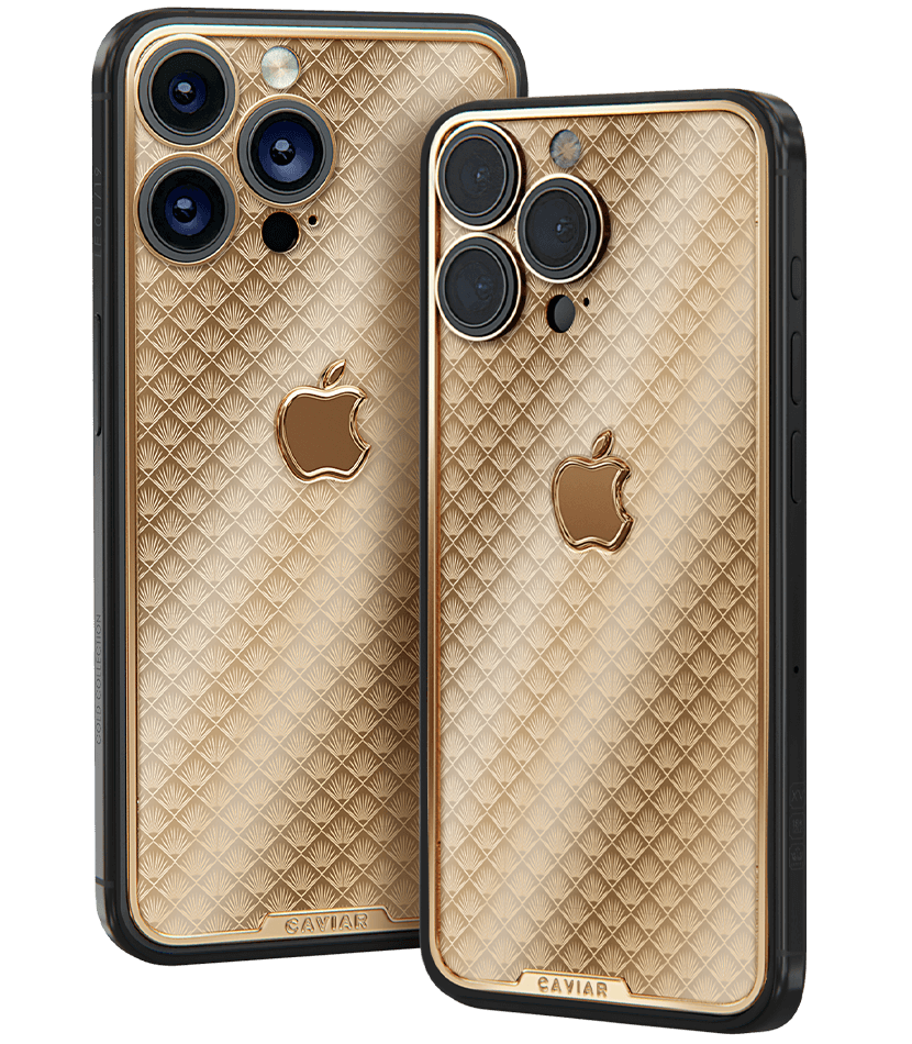 Exquisite design with notes of Swiss luxury watchmaking. Caviar has adorned the iPhone's body with a scattering of royal crowns. The panel on the casing is complemented by a magnificent golden apple. The pure radiance of epochal grandeur embodied in the most advanced device.
