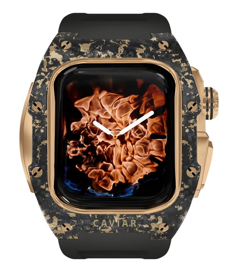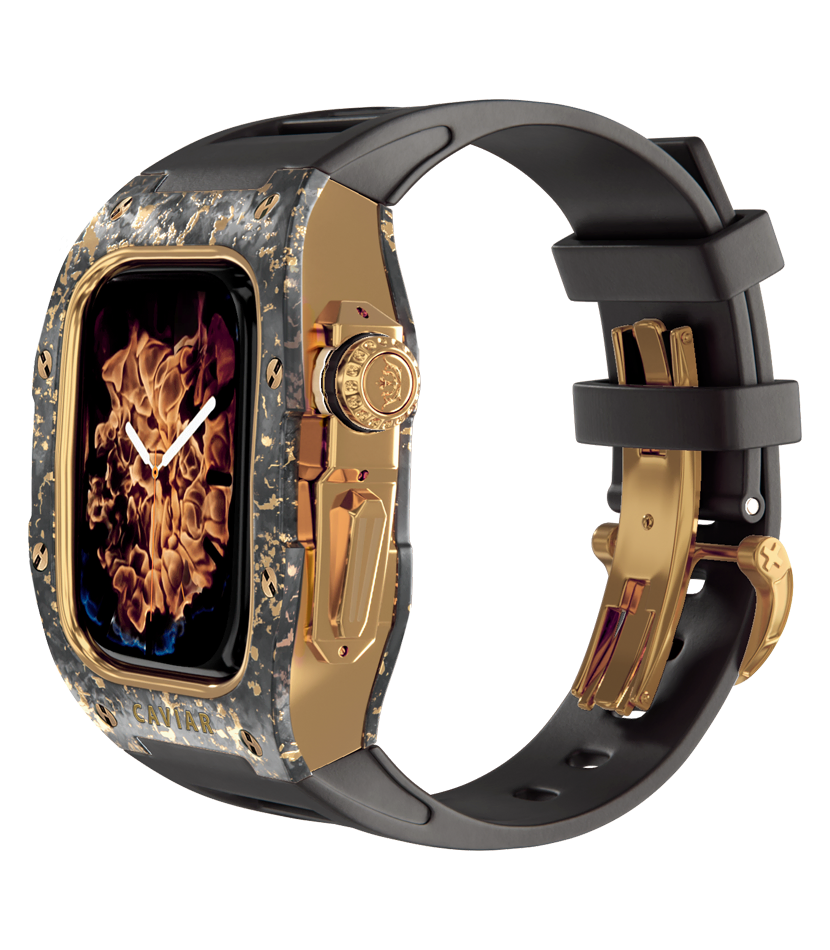 Case: The main body of the case is crafted from automotive-grade carbon fiber — the same material used in next-generation racing supercars. The side inserts are made of impact-resistant titanium with a gold PVD coating.