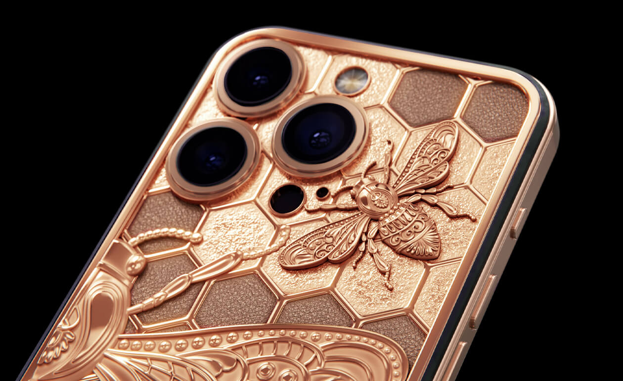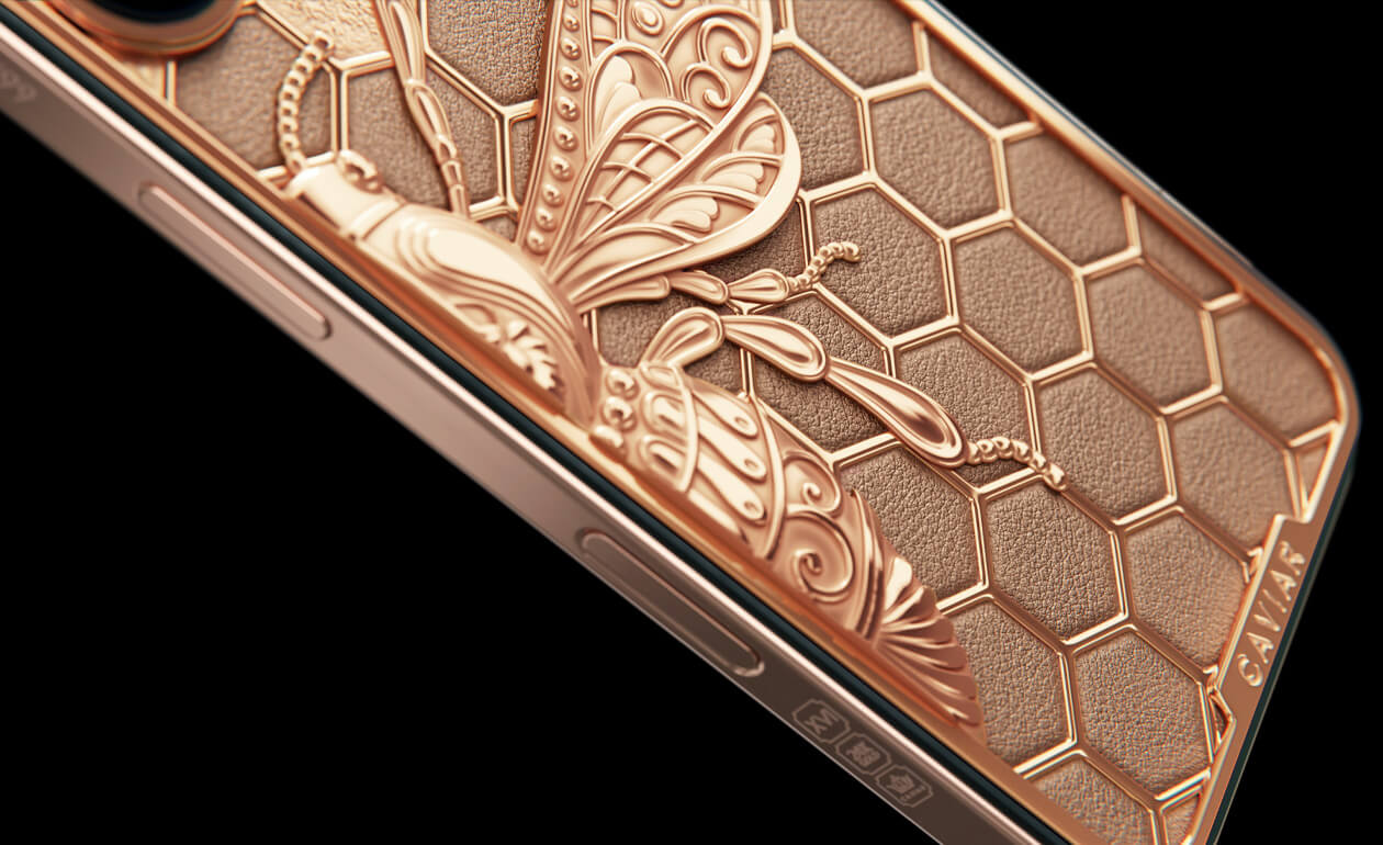 The bee is an unusually multifaceted symbol. It personifies wisdom, fertility, hard work, order, purity and chastity. The bee even became Napoleon's personal emblem. That is why so many meanings are hidden in the new design for the Caviar iPhone Honey Bee.
