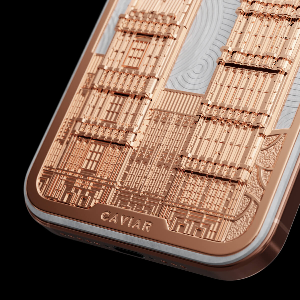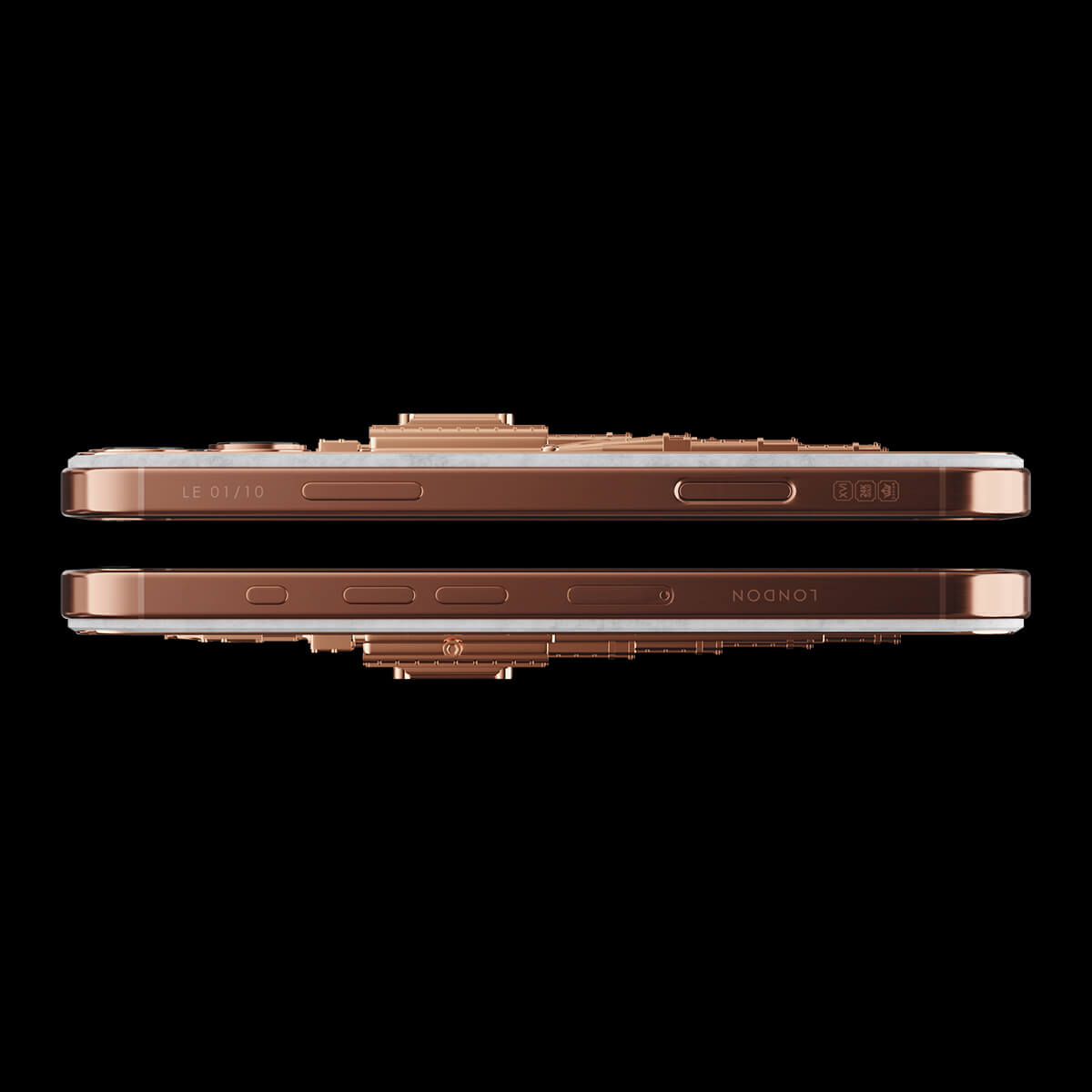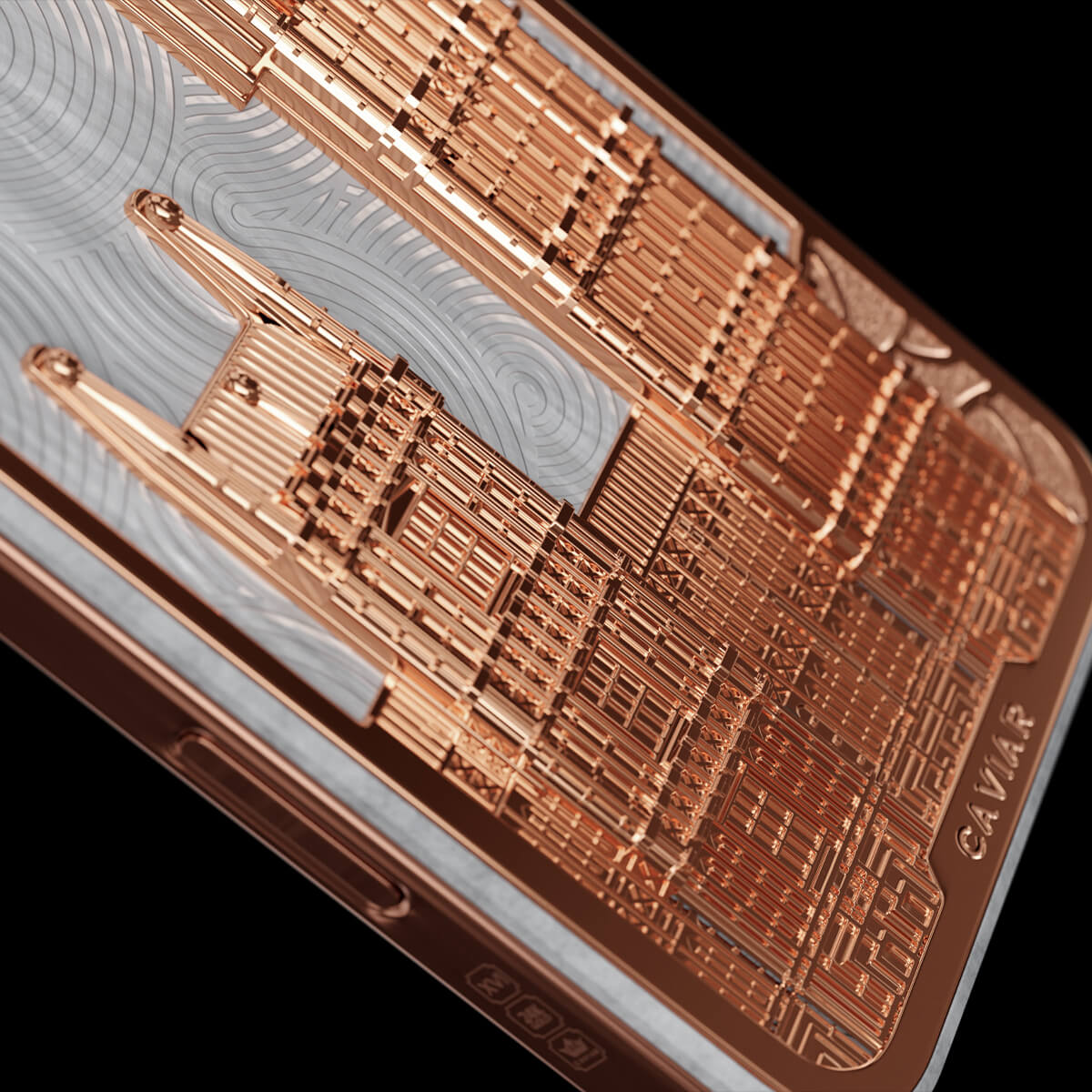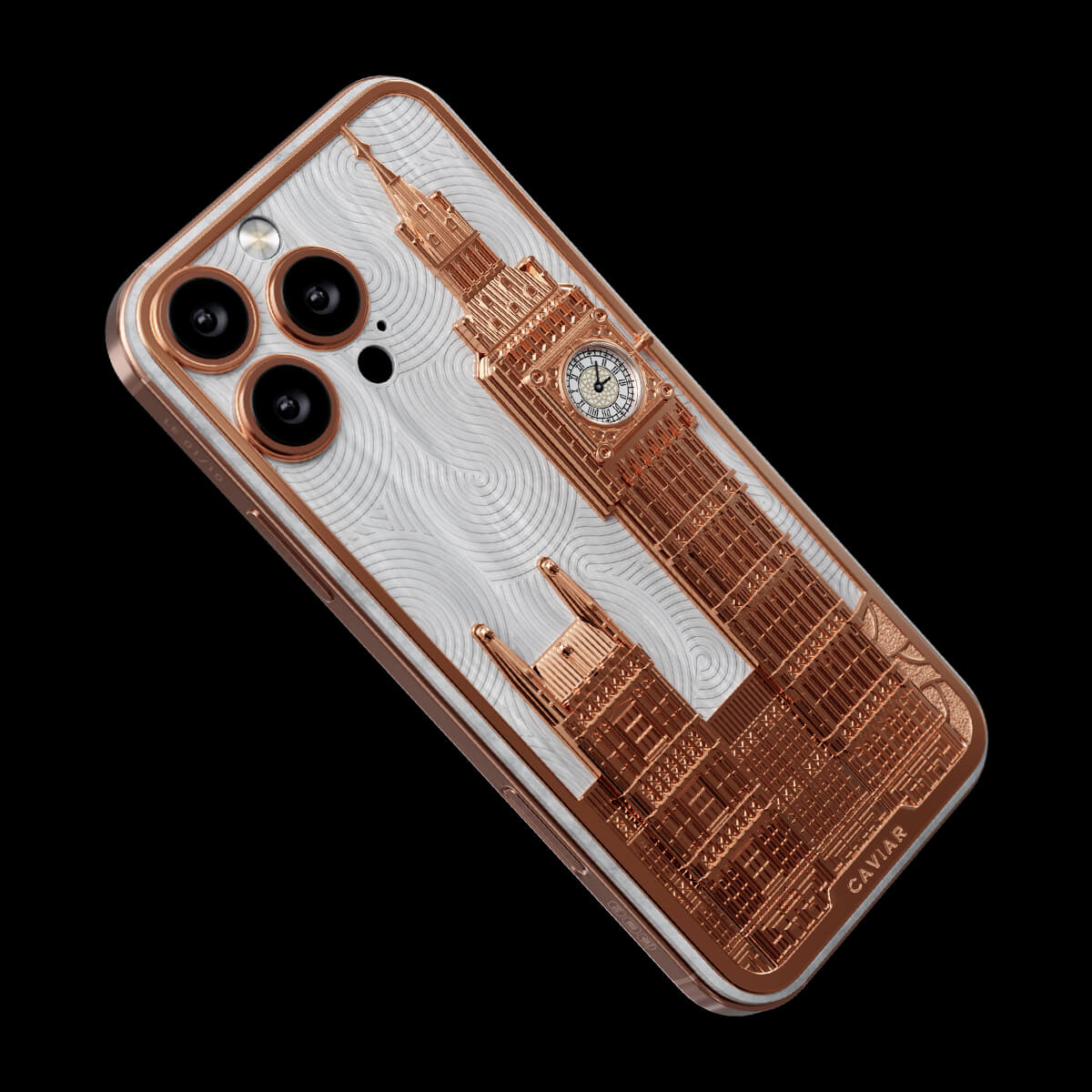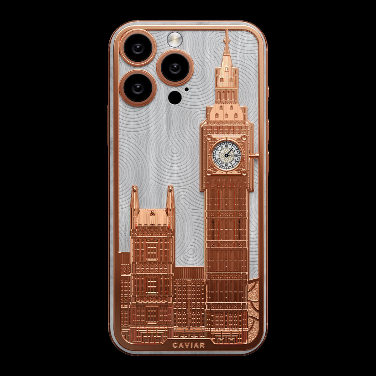 London by Caviar is your ticket to the heart of the capital. The smartphone's case is adorned with a three-dimensional depiction of the tower, coated in 24-carat gold, with a real clock mechanism pulsating at its center.
