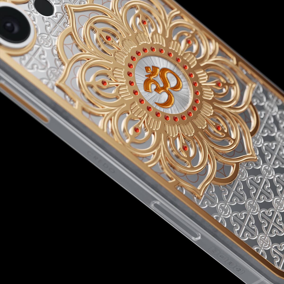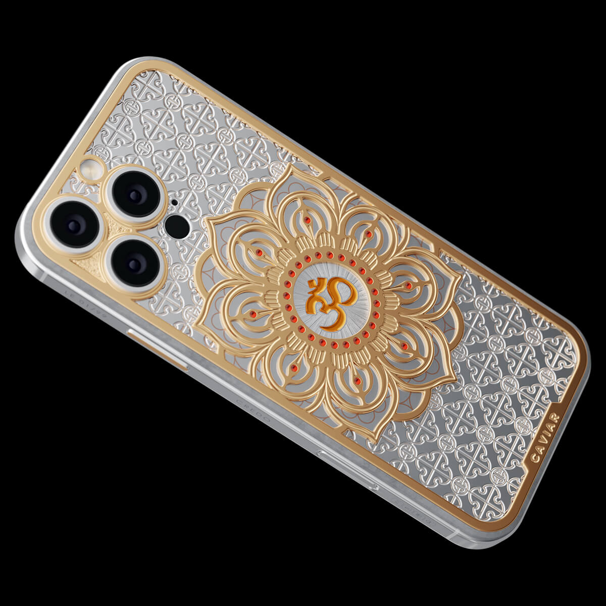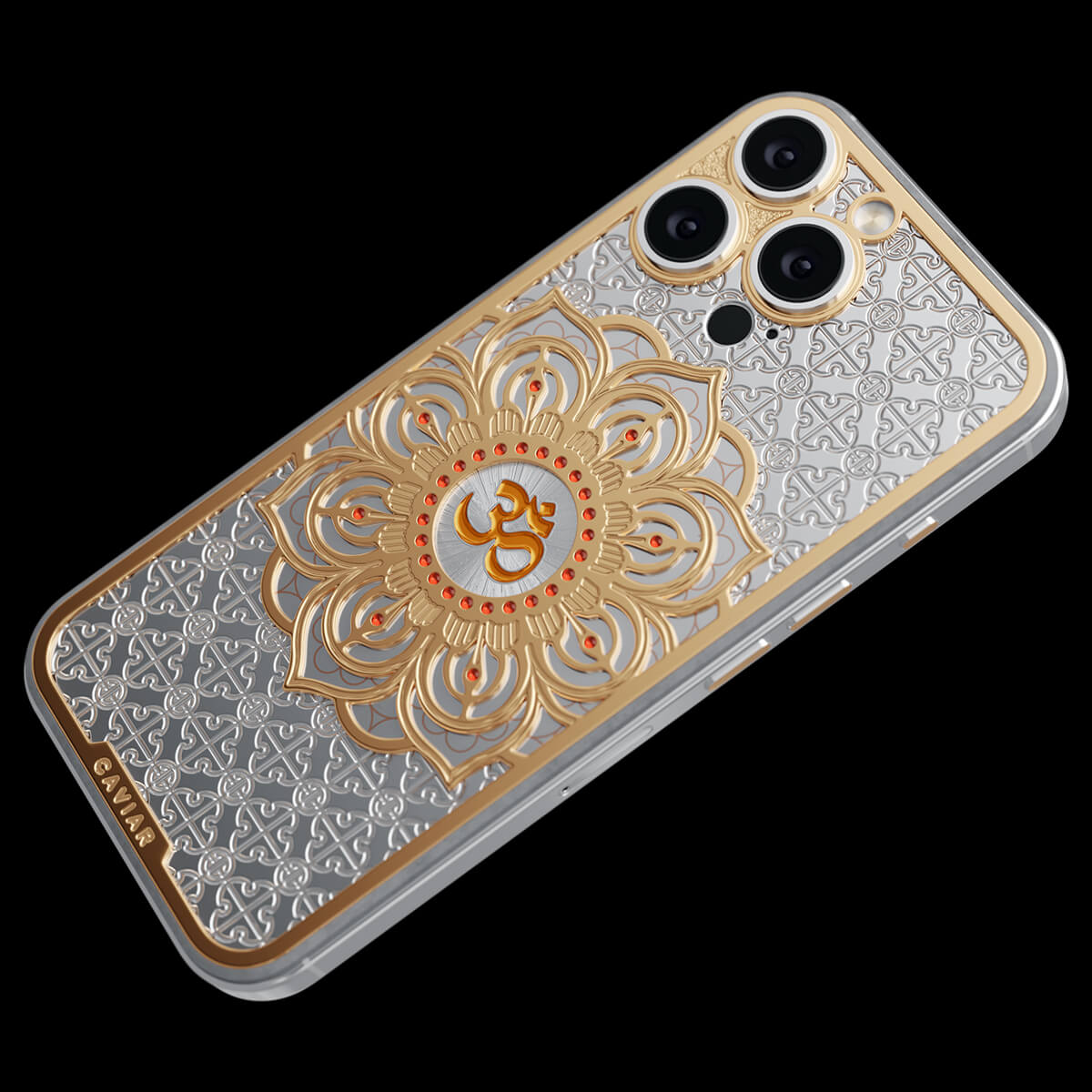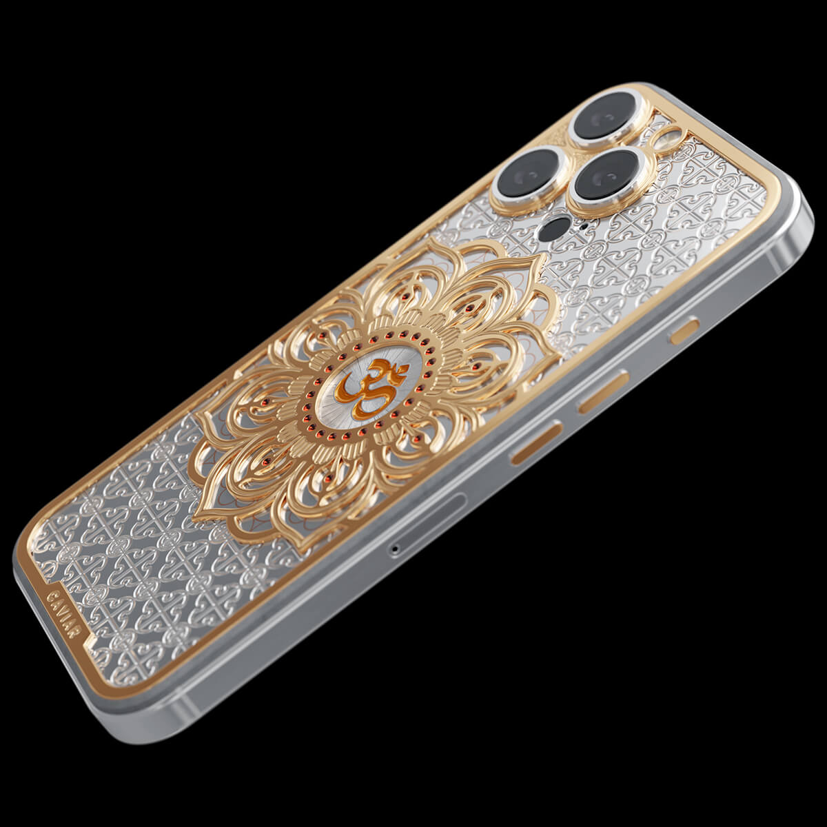 The OM model by Caviar embodies Eastern philosophy. At the heart of the composition is a three-dimensional lotus — a symbol of enlightenment — inlaid with fine jewelry enamel. At the very center of the flower shines the «Om» symbol, a reminder of balance, inner peace, and the energy of the universe.