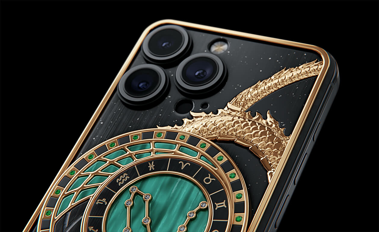 The dragon epitomizes strength and power. The Regal Serpent is truly a majestic custom iPhone, a flagship among flagships, adorned with a bas-relief of a regal dragon. Each golden scale of the serpent is coated with 24-karat gold. At the center of the composition is a three-dimensional image of the dragon constellation, made from Swarovski. Impeccable luxury for those favored by the Eastern dragon.