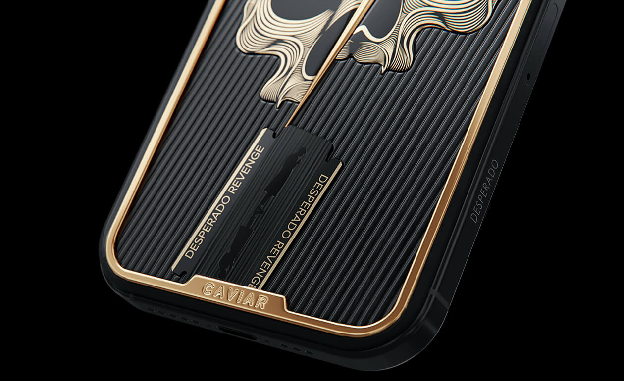 Revenge is a bold embodiment of elegance. This exclusive design from the Desperado series was created for those accustomed to fearlessly pursuing their desires. A stylized image of a blade, made of black PVD titanium with gold embossing, cuts through the black-and-gold skull, symbolizing the owner's defiant nature and keen intellect. If you're accustomed to getting what you want, facing fear head-on, and often playing by your own rules, Desperado Mafia awaits you. Welcome to the club.