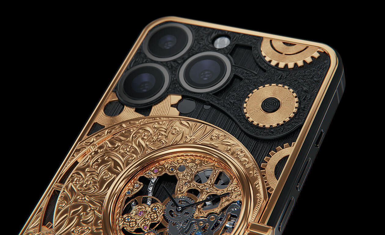 The Grand Complication watch class is the absolute elite of the watch world, where there is a rule: the more complicated, the better! We decided to borrow this principle and transfer it to the world of modern smartphones and literally “complicated” iPhoneo with a clock mechanism!