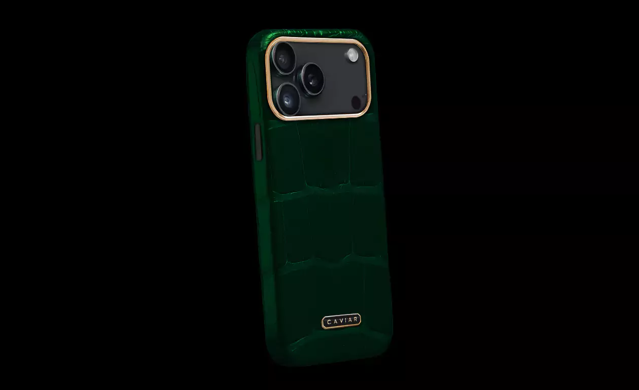 Note the new Caviar emblem, fashioned in jeweler’s enamel and double-electroplated in 24K gold (7 μm). Verdigris is ideal for those who choose accessories with character. This case highlights the strength of individuality and becomes a focal point in any look—from business to everyday.
