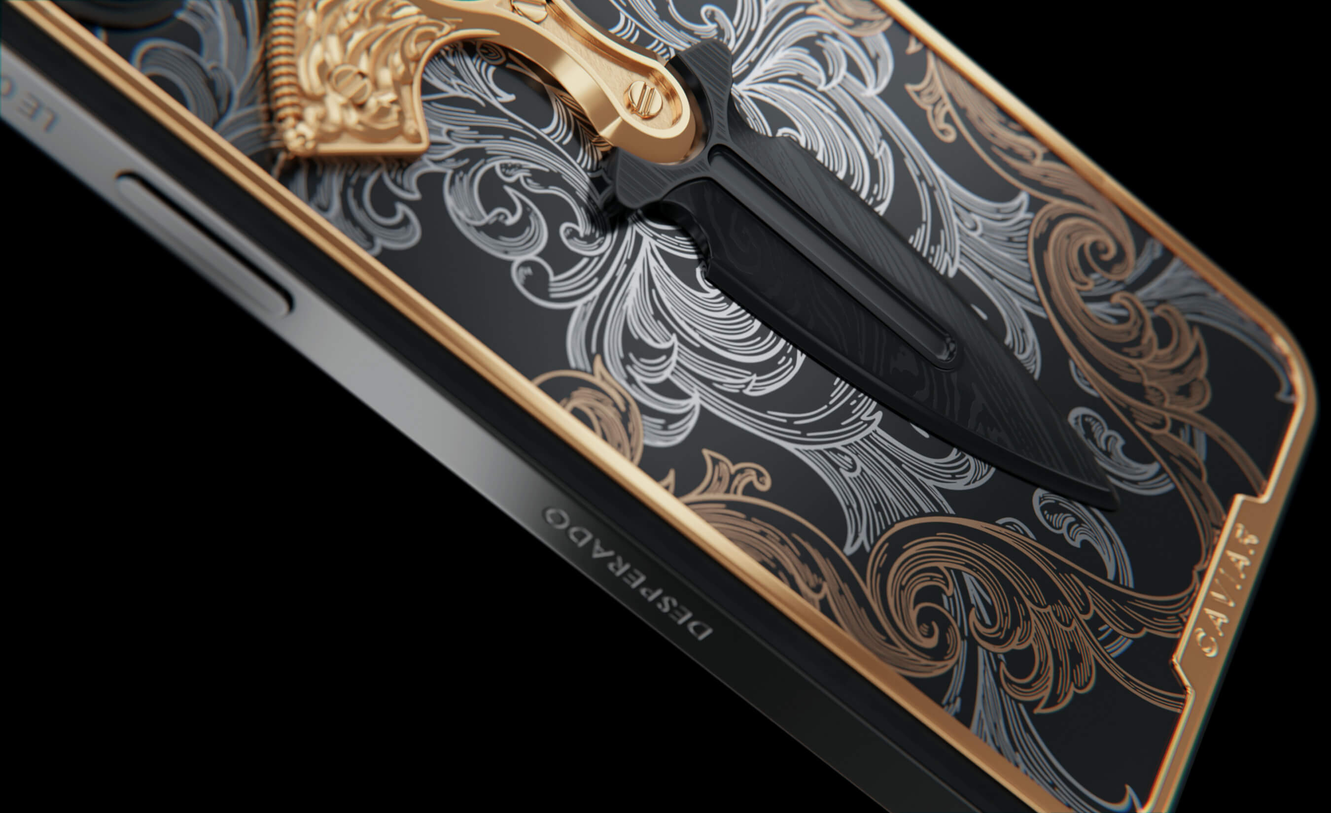 The formidable power of the warriors is embodied in the decorative Daga de puño blade recreated on the body of the phone. The remarkable dagger is decorated with an exquisite pattern and a calavera skull.