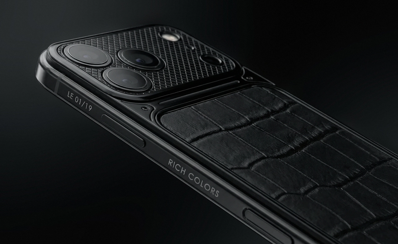 Rich Colors Black Edition is the long-awaited addition to Caviar’s most popular collection based on the iPhone 17 Pro. The famous Rich Colors design has been reimagined in black and perfected. The deep black shade of the chassis blends organically with the brand’s signature luxury, making this model the new flagship of the collection.
