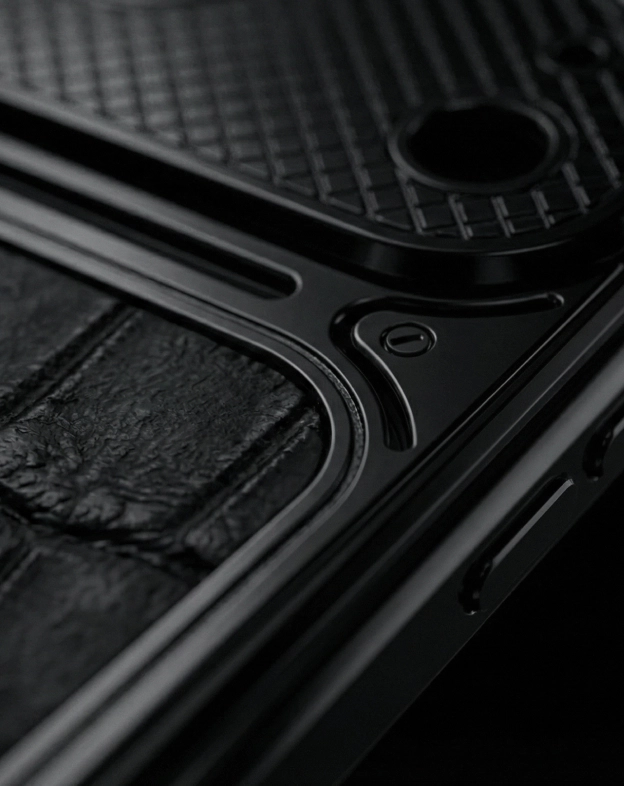 In the fall of 2025, Apple unveiled the iPhone 17 Pro in new colors—Cosmic Orange, Deep Blue, and Silver—but the classic black was notably absent. Caviar has bridged this gap by releasing its own version of the iPhone 17 Pro in a "Total Black" concept featuring a fully black chassis. This exclusive smartphone is adorned with aerospace-grade titanium, natural crocodile leather, and signature decorative screws—accents that emphasize its status and premium nature.
