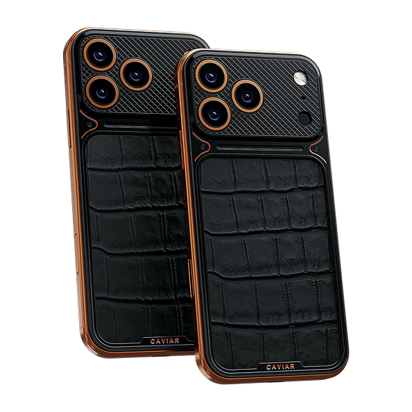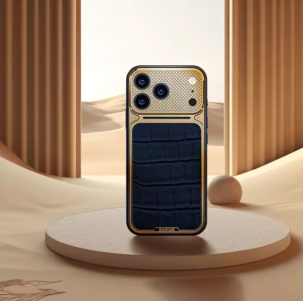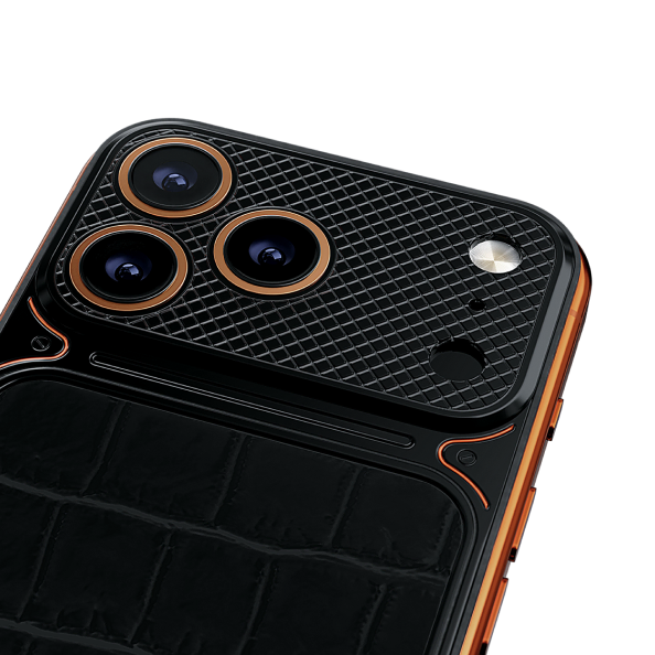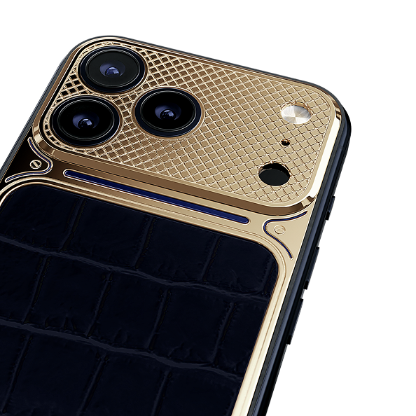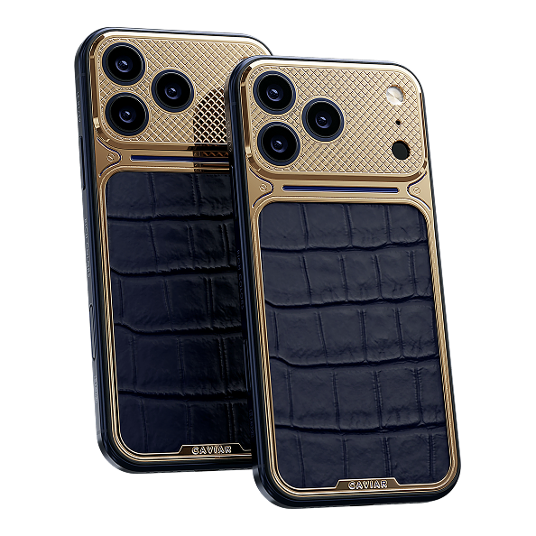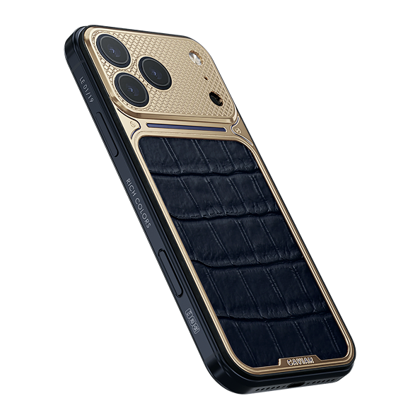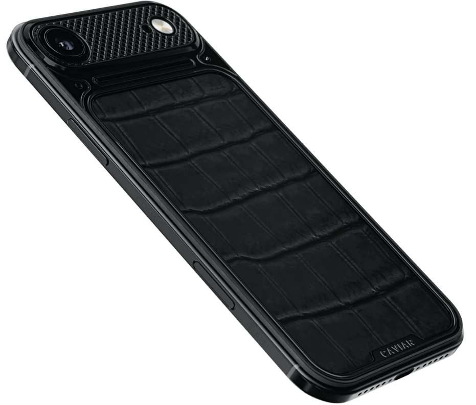Apple embraced vibrant tones in the new iPhone. Caviar refined the idea with deep black, golden highlights, and exquisite materials — aerospace-grade titanium, 24K gold, ultra-resistant steel, marble carbon, crocodile leather, and hand-applied enamel.